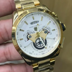 O Tag Heuer Grand Carrera LS – Prime Itália é um relógio sofisticado e imponente, com um acabamento dourado com branco que transmite luxo e exclusividade. Totalmente funcional e à prova d’água, é perfeito para quem preza por elegância e alta precisão.
